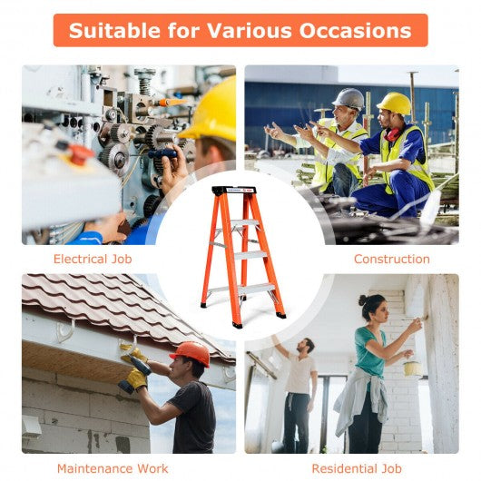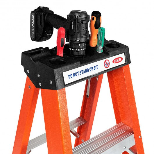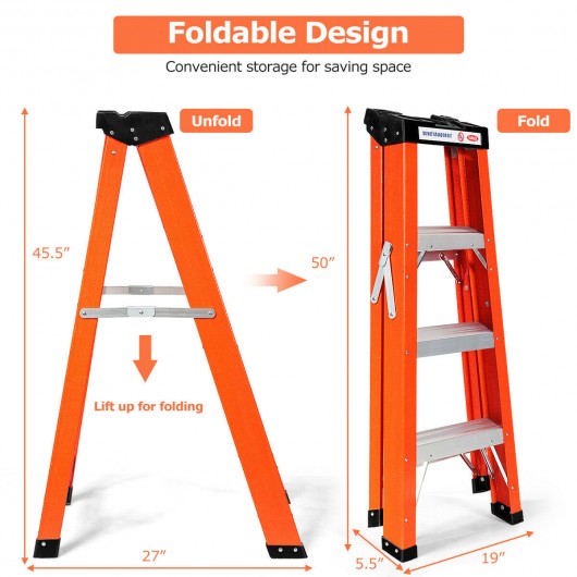 This 3-step ladder is a good helper when you need to climb the proper height for reaching items changing the bulbs or repairing things. The ladder is equipped with a molded tray to store hold paint small items and tools for easy access. Heavy-duty aluminium alloy material spreader braces and anti-slip rubber tread will provide ultimate reliability and stability. Non-conductive fiberglass ensures your safety when around electricity. The step ladder can bear 330 pounds weight without wobbling. It makes the job easier! And you can fold it easily to store it under the bed or in the garage taking little space. If you are looking for this kind of products don't hesitate to place an order! Aluminium alloy material to ensure sturdiness and durability Non-conductive fiberglass to keep you safe Equipped with a recessed tool tray to store paint and various tools Perfect for reaching items doing repairs cleaning tasks Easy to be stored in small corners with foldable design Non-slip boot to protect the floor from scratches Light weight of 11.5 lbs for carrying with less effort Reinforced spreader braces for improved stability 3 step design to do high-place job easily Max weight capacity can reach 330 lbs Smooth finish for easy cleaning