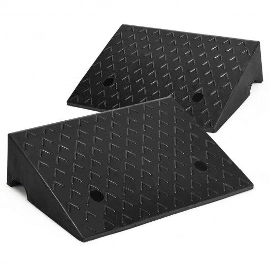 Specification: Color: Black Material: Rubber Dimension: 19" x 13" x 5" (L x W x H) Net weight: 42 lbs Weight capacity: 33 000 lbs Tilt angle: 22� Package includes: 2 x Rubber car curb ramps