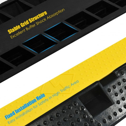 This electrical wire cover ramp is made of high-quality rubber material and will work well to protect wires and warning people to slow down! Featuring a flip-open top it is convenient to put wires of different types in its 2 channels. With this electrical wire cover ramp you can hind the wires on the floor and needn't worry if there are wires on the ground and hinder you from walking or driving. Made of durable rubber this ramp also comes with stronger compression strength and friction force than those of plastics bearing a heavy weight capacity without any crack. With Anti-slip surface and interlocking design this ramp is a great protection for any type of wire in different occasion. You can't miss it it will be your good helper! High-quality rubber material guarantees long service life Anti-slip surface increases the friction in rainy or snowy days for more safety Base with grid structure provides larger support and grip strength Interlocking design helps connect ramps to meet different needs 2 channel grooves designed for wider storage space for wires Flip-open top makes it easier to put in the wires Bright yellow color on the top for protecting people from tripping A great protection for any type of wire in different occasion