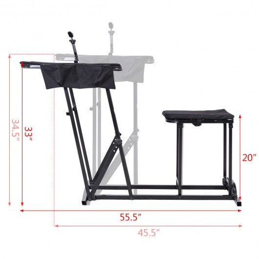 Specification: Material: Steel sponge and 600 denier polyester fabric Dimension of table platform: 24" x 24" Dimension of seat platform: 17" x 12" Table height: 33" - 34.5" Shooting rest height: 7" - 9.5" (can be configured for left or right shots) Seat height: 20" Folded size: 48" x 24" x 5.3" Weight: 35 lbs