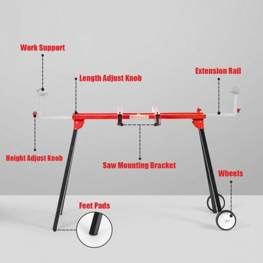 Folding Miter Saw Stand with Heavy Duty Saw Frame-Red