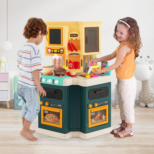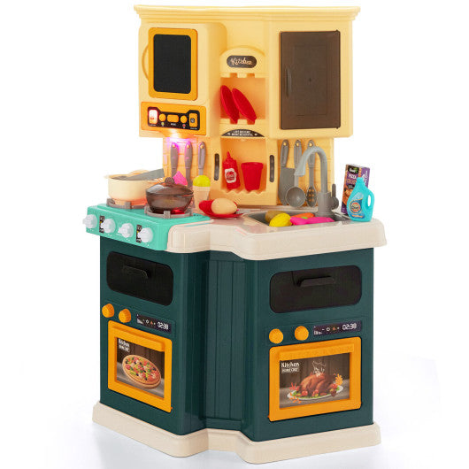 67 Pieces Kid's Kitchen Playset with Vapor and Boil Effects-Green