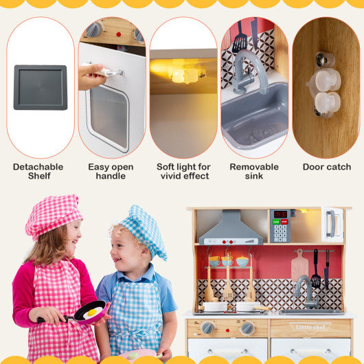 Multi-Functional Wooden Kids Kitchen Playset with Lights and Sounds