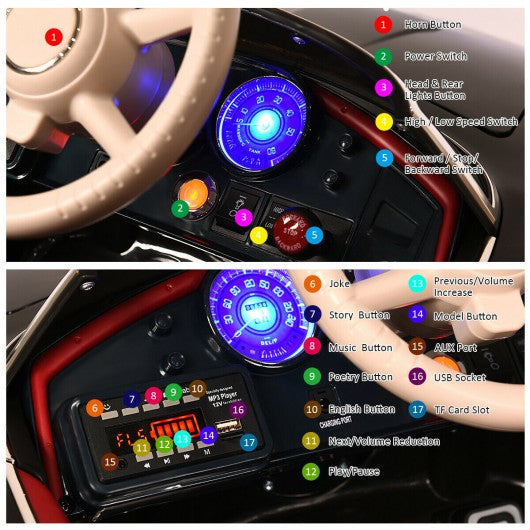 The electric ride-on vehicle has two way to operate.   Preparing a gift for your children? This BMW 507 licensed kids ride on car fits in exactly with your wishes. Parental control mode promotes parent-child interaction and ensures safety. battery operate mode allows children to play freely. In addition it is easy to operate to move it forward backward stop or turn left and right. Multifunctional ride on car with build-in music story horn headlights function and MP3 USB socket and TF card slot(TF card is not included) makes the ride more enjoyable. What's more slow start-up and suspension spring designs ensure a safe and smooth riding. The wear resistant wheels are suitable for various roads like asphalt road cement floor and brick road. Let our ride on car be a best company growing with your children.   If you are looking for BMW 507 licensed kids ride on car don't hesitate to buy it!   Two modes control not only promotes parent-child interaction but also allows children to play freely Best gift for children aged from 3 to 8 Licensed officially by BMW Scratch resistant wheels with spring suspension system suitable for kinds of pavement Designed with safety considerations such as slow start-up design doors with safety lock seat with safety belt Made of PP material kids-friendly and durable having large weight capacity Multifunctional with headlights horn MP3 music story and volume controller Easy to control it to move forward backward or stop turn left or right three-speed to adjust Pull handles and small wheels for easy movement UL certificated and ASTM certificated ride on car