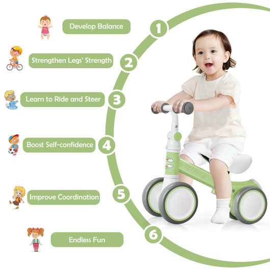 Baby Balance Bike with Adjustable seat and Handlebar for 6 - 24 Months-Green