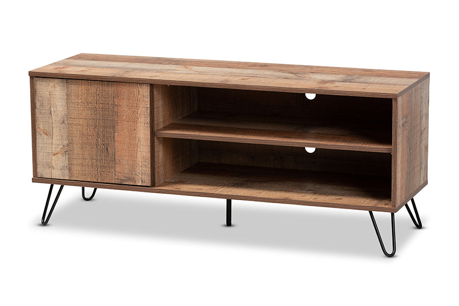 Baxton Studio Iver Modern and Contemporary Rustic Oak Finished 1-Door Wood TV Stand