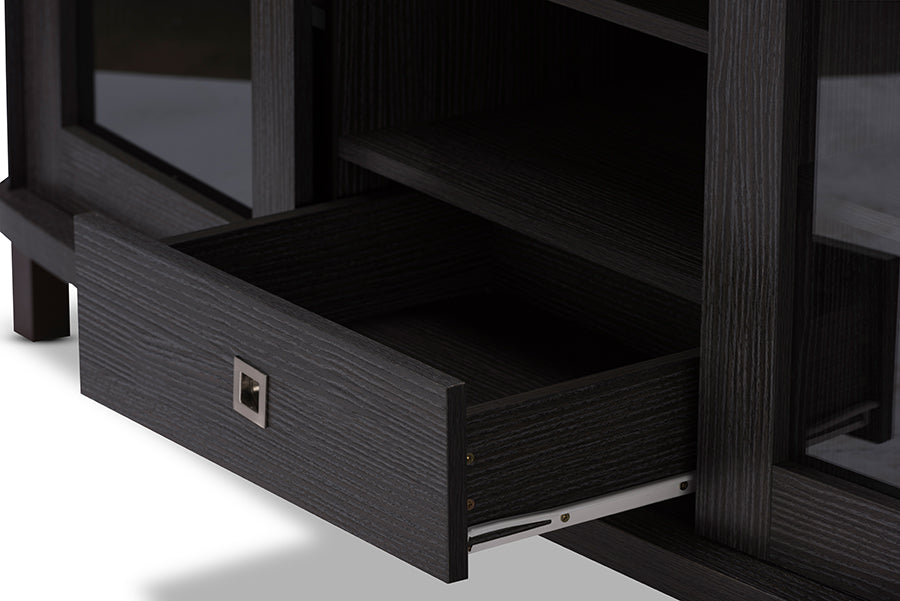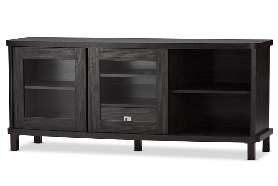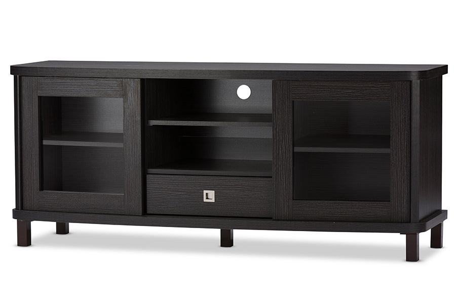 Baxton Studio Walda 60-Inch Greyish Dark Brown Wood TV Cabinet with 2 Sliding Doors and 1 Drawer