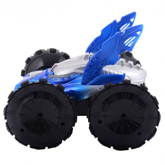 Electric Amphibious RC Car Remote Control Stunt Car 360° Spin Land Water Toy-Blue