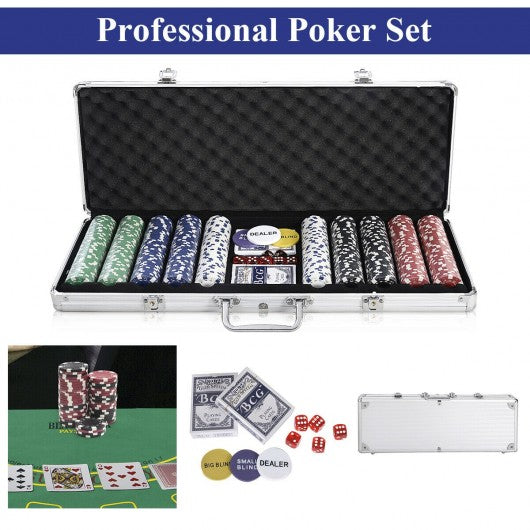 500 Chips Poker Dice Chip Set w/ Silver Aluminum Case