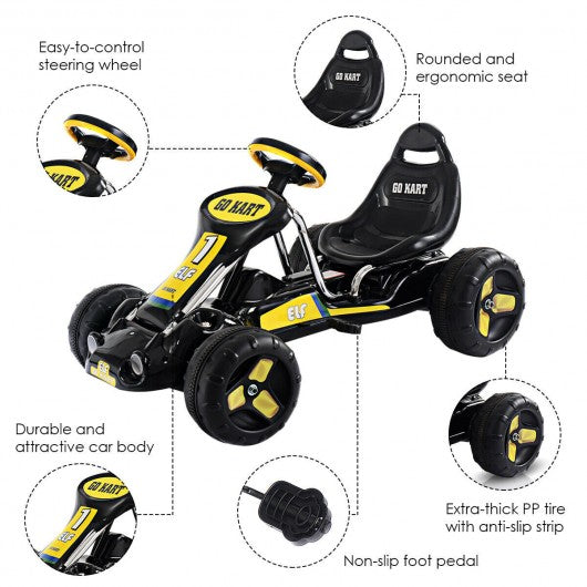Go Kart Kids Ride On Car Pedal Powered Car 4 Wheel Racer Toy Stealth Outdoor-Black