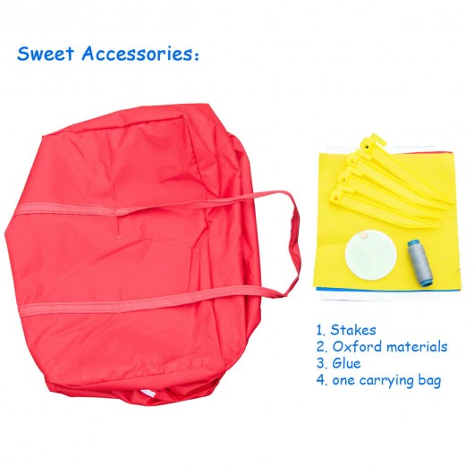 Specification: Material: 800D and 420D Oxford Cloth Size: 131" x 106.5" x 81.5" (L x W x H) Product weight: 18.5 lbs Recommended blower: 480W(Not included) Recommended for children aged 6+ Max weight capacity: 385 lbs (Recommended for 1-5 kids) Package includes: 1 x Inflatable bouncer 1 x Carrying bag 1 x Repair kit 4 x Ground stake