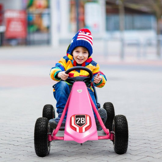 Do you want to give your child a perfect gift? This pedal go kart is designed for children ages 3-8 years old to exercise their coordination and endurance. It can be used both indoors and outdoors to provide a realistic driving experience for your child. The easy-to-operate steering wheel clutch handbrake and pedals make it easy to control the speed and direction of the go-kart. The comfortable seat is ergonomically designed and will not feel uncomfortable even if your child has been riding for a long time. And the seat can be freely adjusted according to the child's height to accompany the child's growth. Wear-resistant and shock-resistant rubber pneumatic tires enable your child to travel smoothly on various roads. Your child will love it very much! This go-kart is your best choice please don't hesitate to buy! If you are looking for such product don't hesitate to buy it now! It is suitable for children aged 3-8 years old and is the best gift for children. Provide a realistic driving experience and exercise your child's coordination and endurance. The go-kart can advance and retreat by pushing the clutch. A safe handbrake helps the child to stop immediately. Comfortable steering wheel is easy to adjust the direction. Ergonomically designed seat can be adjusted back and forth to fit the child's height. Rubber pneumatic tires are resistant to wear and shock and can be used both indoors and outdoors. The kart frame is made of high quality PP and iron and has a sturdy construction for durability. Easy-to-operate pedal design allows the child to easily slow down and control speed.