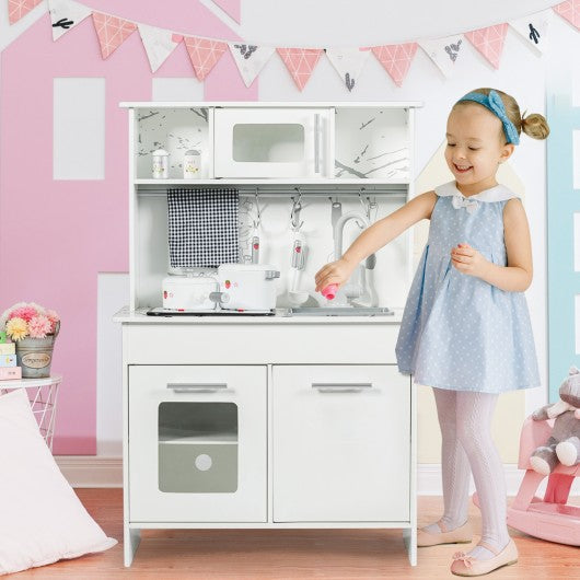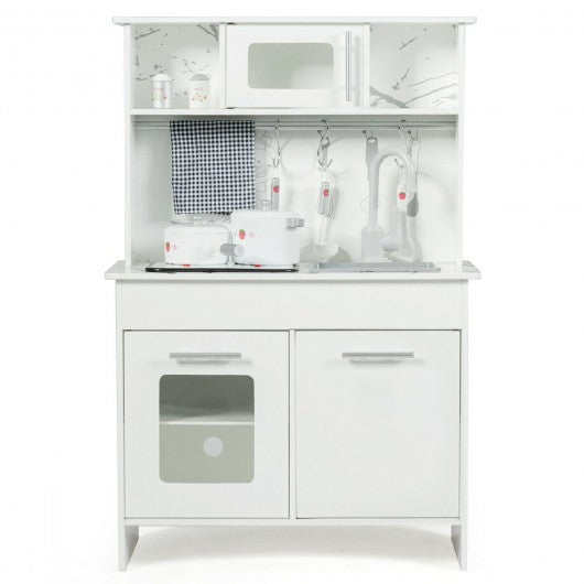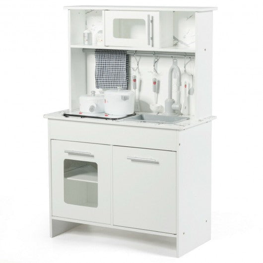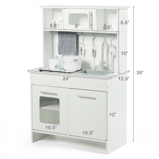 Kids Pretend Kitchen Playset Gift with Utensils White