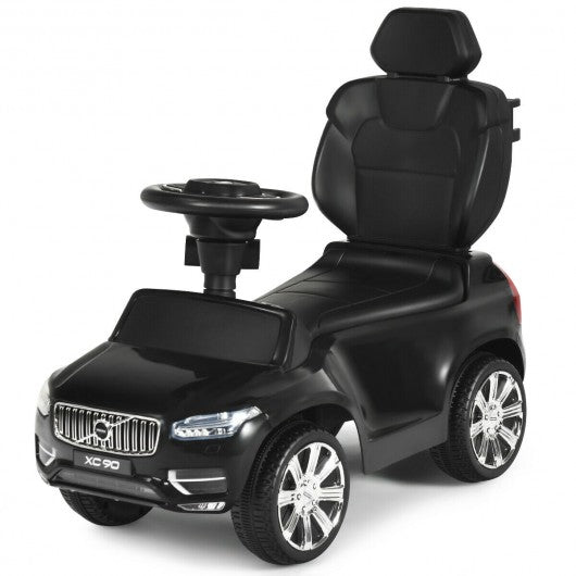 This licensed Volvo car toy combines the functions of the stroller walking car and ride-on car for easy pushing pulling and sliding. Your little angel can slide the car by himself/ herself or you can control the car with a removable handle rod. Wear-resistant wheels adjustable sun canopy safety guardrails and anti-fall board are protective enough to enhance kids' safety during riding. If kids want to carry some small toys snacks or other items the hidden storage room under the seat will satisfy their requirements perfectly. Ergonomic seat built-in music horn sound and steering wheel will give them wonderful and exciting driving experience. If you are looking for a stroller like that don't hesitate to buy it. 3 in 1 stroller walking car or ride-on car Kids-friendly PP material and metal frame to ensure sturdiness and durability Equipped with AUX input USB port and TF card slot to connect external devices Multifunctional steering wheel with music and horn button Effectively protects kids from falling backward with anti-roll board Foot pedal ergonomic seat and backrest for a comfortable riding experience 4 wear-resistant wheels and protective guardrails for safe use Sun canopy can be adjusted to get a proper angle Parental handle to control the angle of the front wheels from 13�-15� Built-in music education and story mode for added fun Spacious storage space under the seat to store toys snacks etc