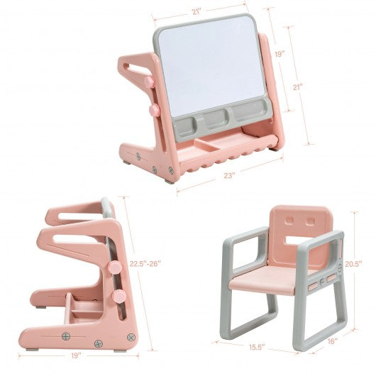 2 in 1 Kids Easel Table and Chair Set with Adjustable Art Painting Board-Pink