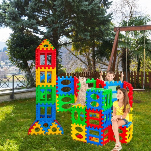 This big building block set brings endless fun for children while exercising their basic abilities. Consist of 16 rectangular boards and 16 triangular boards this jumbo block toy with different colors provide children with endless possibilities to create different shapes. And kids can put them together or separate them due to the suitable grooves and lightweight design. This compact building block set will not take up too much space so it can be stored in a variety limited places. What's more it is made of safe and premium material with smooth surface which is safe for long-lasting use. Also the waterproof surface allows you to clean it with a damp cloth easily. This eye-catching will be a nice gift for girls and boys. Let your child's imagination soar with 32 pieces snap-together giant waffle blocks. If you are looking for a building toy like this do not hesitate to place an order! 32 pieces with different shapes to stimulate kid's creativity Helps in development of imagination creativity and more Parts all nest into each other for easy install and store Safe and excellent material protects children's safety Waterproof surface for versatile use and easy cleaning Perfect for building a fort castle and anything else Lightweight and compact design for convenient movement A perfect gift for children on birthdays and Christmas Day
