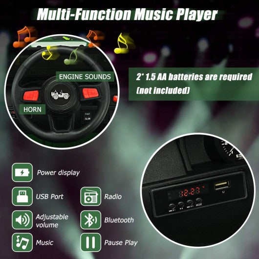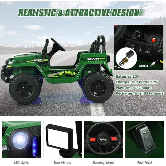 12V Kids Ride-on Jeep Car with 2.4 G Remote Control-Green