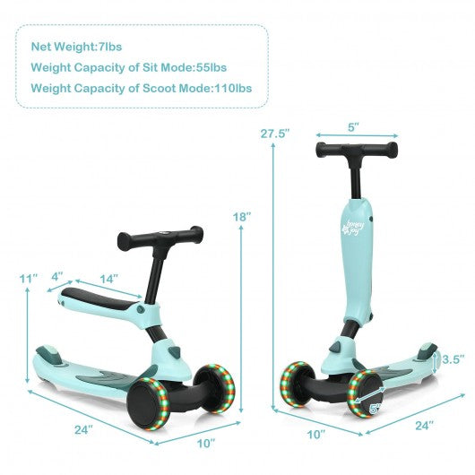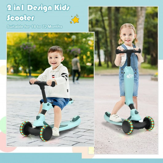 2 in 1 Kids Kick Scooter with Flash Wheels for Girls Boys from 1.5 to 6 Years Old-Green