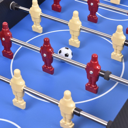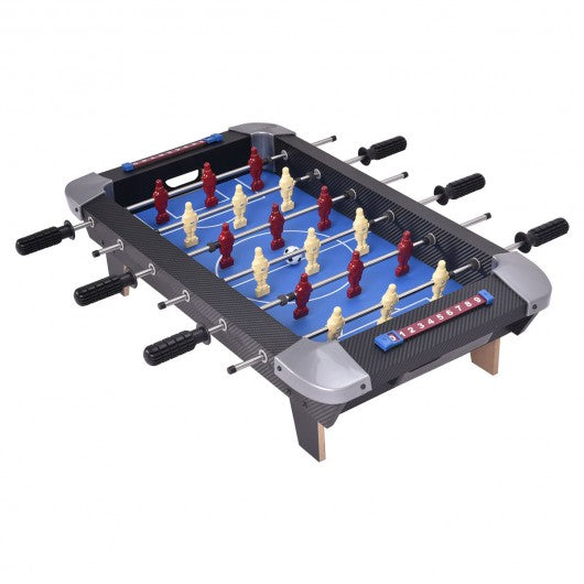 Enjoy a competitive game of table soccer with this mini tabletop football table. You can play this game anywhere in your home as it is small enough. This tabletop soccer game with accessories includes two soccer balls and score keepers to help you keep track of how many goals have been scored. It is lightweight and easy to move from room to room. The soccer ball moves smoothly on this mini football table and it returns easily. This mini tabletop football game is compact and can be stored efficiently when not in use. High quality with competitive price can be realized here! Don't hesitate to buy it. Brand new and high quality Strong wood construction and solid steel rods Mini games table top foosball with accessories The tabletop soccer game with accessories provides real life action Lightweight and easy to move Great addition to almost any room in the house 6 rows of 18 players - 9 for each team Some assembly required but comes with everything you need to put it together Including an Allen wrench