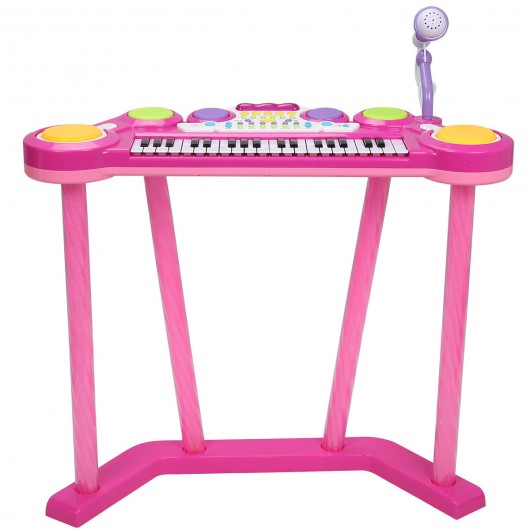 Your kids shall have a good time performing and recording like a pianist to be creative with the 37-key electric piano. The tempo and volume is adjustable and you can sing along to the music while recording a musical masterpiece to share with family and friends. Speeding up or slowing down the tempo to match your style you can also choose an instrument from the console and use the keyboard to play it on different sounds. There features 3-way teaching modes and includes 22 melodies demonstrative songs. The electric piano can help exercise hand-eye coordination motor coordination puzzle rich imagination and emotions while playing. The working microphone included helps make the sound real and lively. Don't hesitate to buy it! High quality ABS and PP material nontoxic environmental friendly Lightweight and durable 37 keys electronic keyboard Comes with a microphone Timbre button and rhyme button of 8 instruments Pluggable power supply option or battery power supply option (batteries not included) 22 melodies demonstrative songs Can be connected to MP3 3-way teaching modes 4 ligntening drum legs Adjustable volume Record songs while playing Replay / stop all sounds Practice children's music talents imagination Perfect gift for kids Assembly required