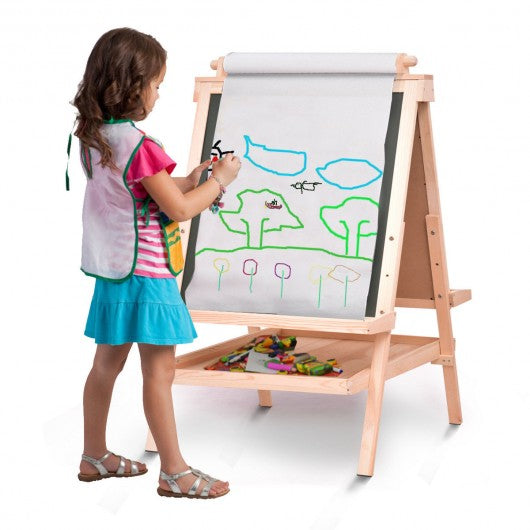All in One Kid's Double Side Wooden Art Easel with Paper Roll