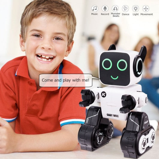 This is high quality intelligent robot which brings more joy and laughter to your family.   The robot is made of eco-friendly ABS so it can achieve long lasting use. It has three control  modes (remote control mode interactive sound mode and touch modes) so you can play with him in any of three modes. It comes with a coin bank to develop your kids saving habit as well as teach your kids some financial tips. This robot is multi-functional programmable which can be programmed to carry out movements as you create. Equipped with a small tray it also can help you send gift to other.   What's more recording function singing and dancing abilities and lovely eye and ear light change make this robot catches the child's eye easily. Don't hesitate to buy one!   Brand new and high quality Made of premium ABS sturdy and durable Equipped with 2.4G remote control mode and latest sound control mode & touch control mode great fun to control and play with Built-in coin bank helping develop saving habit and learn some financial tips With a small tray to help send gift Good at singing and dancing bring more fun Programming design carry out movements according to your create Record and replay what you speak Abundant eye and ear light change Recoding content in order to change three ways monster beats Slide forward and backward turn left and right