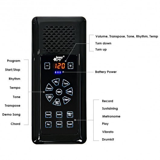 The 88 key roll up piano keyboard equipped with 128 tones 128 rhythms 15 demonstration songs making it the ideal keyboard for those who enjoy music and start to study play piano. You can roll it up and put it inside your carry bag for easy storage to get rid of the limitation of space. Without the limitation of place or time you can show your outstanding playing. For kids the roll-up piano will be a cost-efficient way to develop piano-playing interest. For players the roll-up piano can be a convenient substitution for real piano to avoid irregular training when in another place. All in all the portable keyboard piano will be a great choice for all ages! Bluetooth transpose chord recording playback educational and MIDI functions Keyboard piano can connect with microphone computer MP3 and sustain pedal 128 tones 128 rhythms 15 demos satisfy player’s different needs Foldable piano convenient to carry allows for playing anytime and anywhere Premium grade silicone material makes for comfortable playing ASTM certification ensures safety and reliability for kids to use 88 Standard keys keyboard brings real piano feeling for players USB rechargeable keyboard real-time display of residual battery power The waterproof and dustproof surface is easy to clean and maintain Perfect for people of all ages for playing educating or training