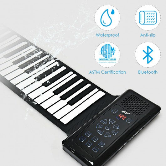 88 Key Electronic Roll Up Piano Silicone Keyboard-Black
