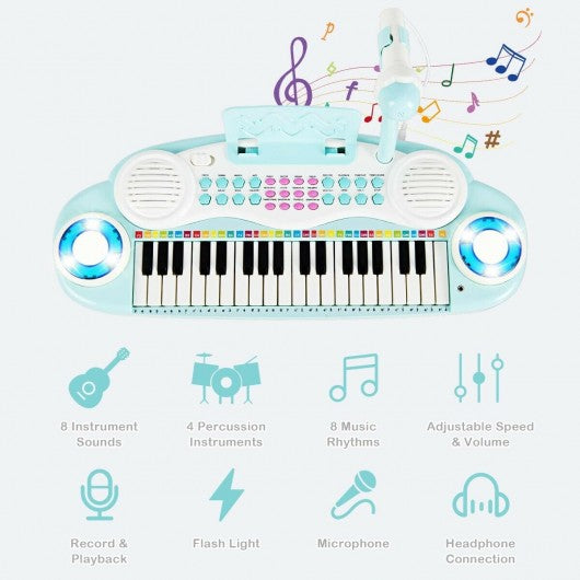 37-key Kids Electronic Piano Keyboard Playset-Blue