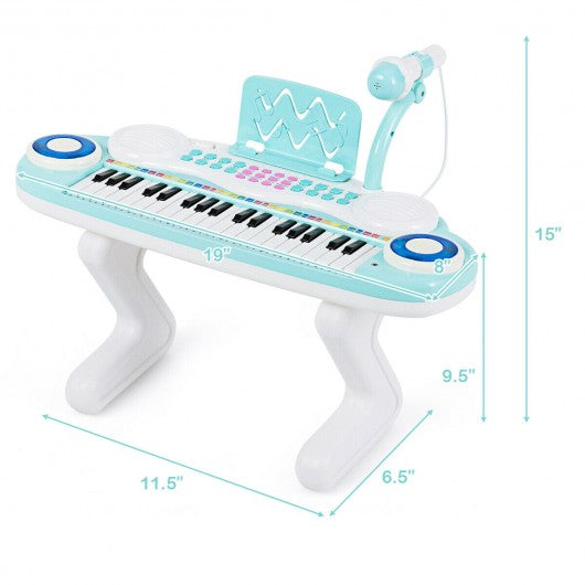 37-key Kids Toy Keyboard Piano with Microphone-Blue
