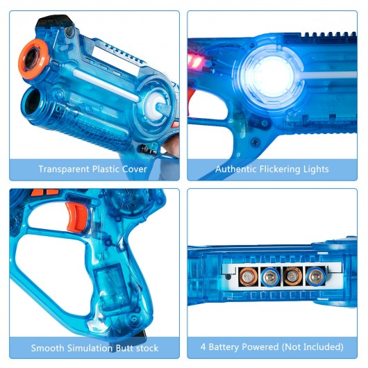 If you still worried about your kids are addicted to video games and lack of social communication in holidays these 5 pcs laser tag gun blasters help you solve this problem. It's a fun set of guns that ushered in a new era of interaction. Excellent helicopter will spread out colorful light in the night and bring you with interesting playing experience. It also uses high-tech infrared sensor technology to make shoot safer. Pistols can be switched from one gun to another. Realistic sound effects make you feel like you're in a real arcade arena. The gun is equipped with a lifetime value lamp which makes shooting game more exciting. Meanwhile it comes with two walkie talkies that help you maintain contact with your partner. It can organize multi-person warfare bring you hours of entertainment and create good memories. If you are looking for laser tag gun blasters don't hesitate to buy it! Four types of guns can be switched to increase children's flexibility Authentic flickering lights booming sound effects and tactile vibrations The cool helicopter will attract every boy and make them happy A set with two walkie talkies you don't need to buy it alone Enjoy family pleasure through multi-player team battles The ergonomically designed handle fits your hands easy for kids to hold Infrared emission instead of real bullets to keep both kids and adults safe Have a blast with your kids on holidays snow days or birthday parties An ideal gift for kids and can delight kids over 3-years-old