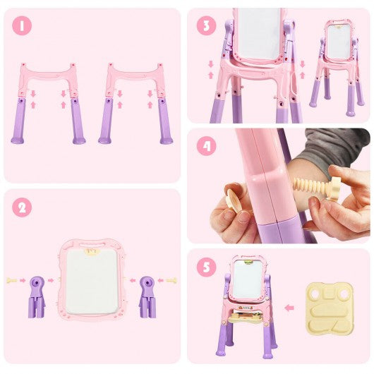 Kids Flip-Over Magnetic Double Sided Art Easel-Pink