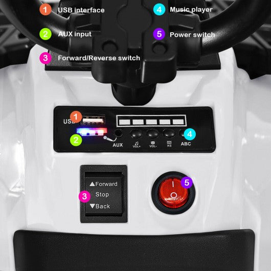 This product is not for sale in California! This brand new fantastic and functional kids ride on ATV is the best gift for your lovely children! It comes with realistic ATV details that your child will surely love: cool appearance working headlights music effect and forward/backward function. Using the MP3 player via USB memory cards or plugging in your own playlist via AUX port kids can enjoy their favorite tunes or stories while riding around. Children can operate it easily with several buttons and a foot pedal. Besides stable four wheels design makes sure the ATV won't fall down in any circumstance ensuring your child's safety. The electric toy will bring excitement to children's play time while taking kids on a thrilling adventure! With headlights built-in music forward/backward function adjustable volume MP3 Player: with AUX input and USB port to connect your device Easy to ride and control with a few buttons and a foot pedal Cool and stylish ATV appearance are popular with kids Brand new PP and iron material durable and harmless to human body Wear-resistant wheels with deep grooves add friction for stability A perfect gift for children provides healthy exercise and plenty of fun Naturally develop hand-eye coordination ability in play and laughter Equipped with rechargeable battery & charger ASTM certified for more safety