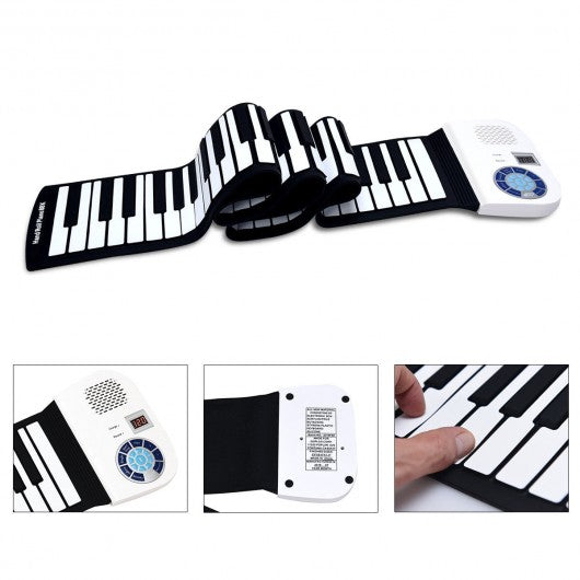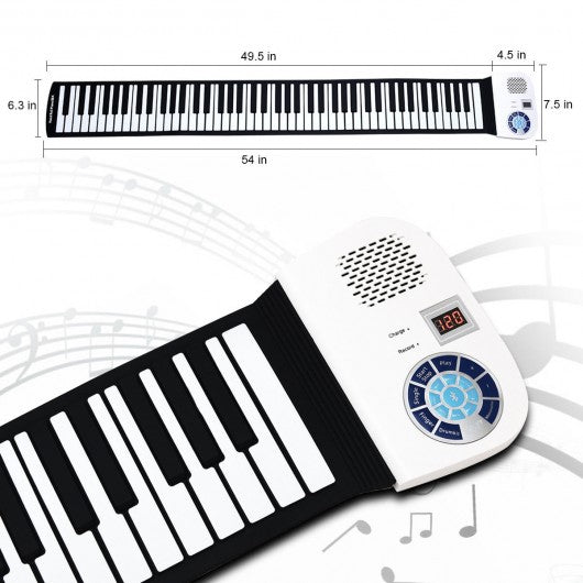 88 Keys Midi Electronic Roll up Piano Silicone Keyboard for Beginners-White