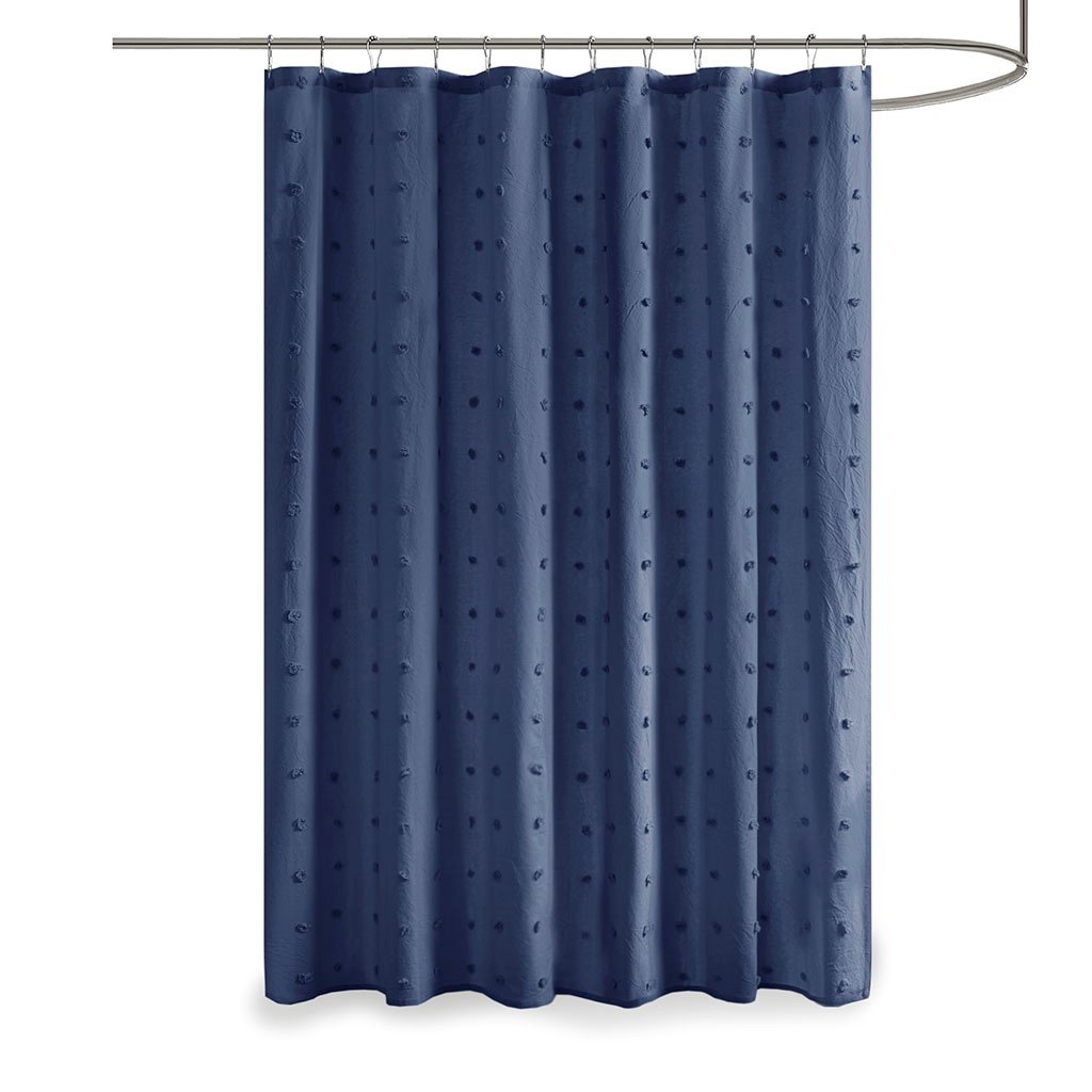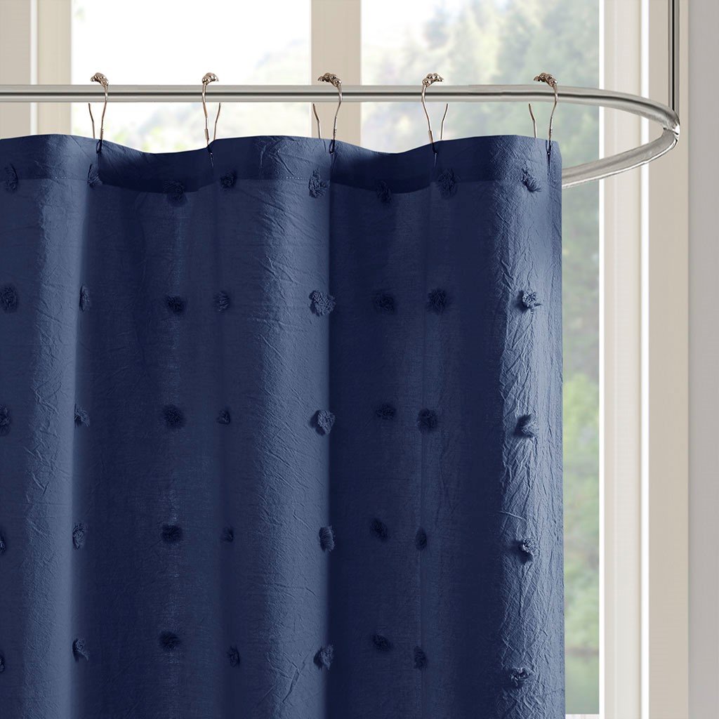 Urban Habitat Brooklyn 100% Cotton Jacquard Pom Pom Shower Curtain- Indigo Blue UH70-2312 By Olliix