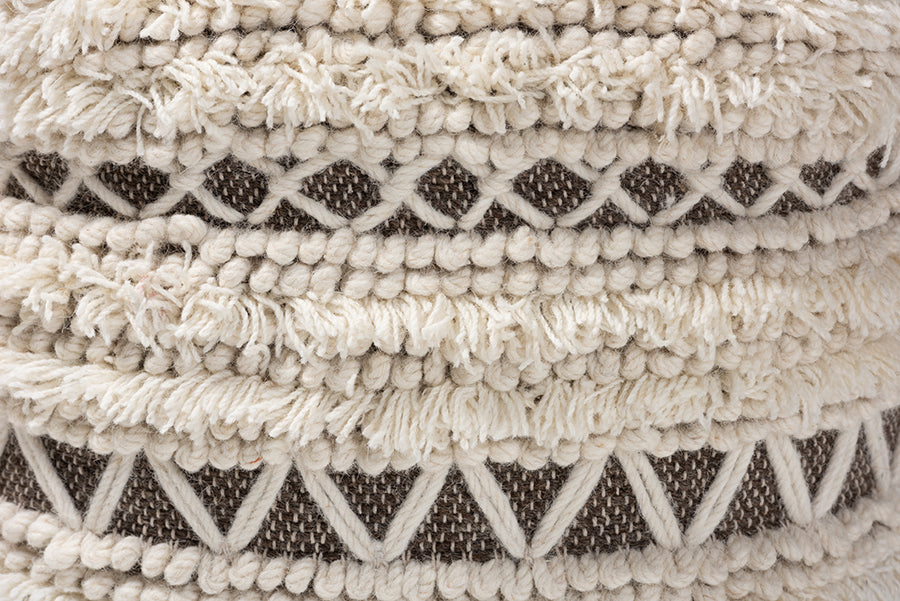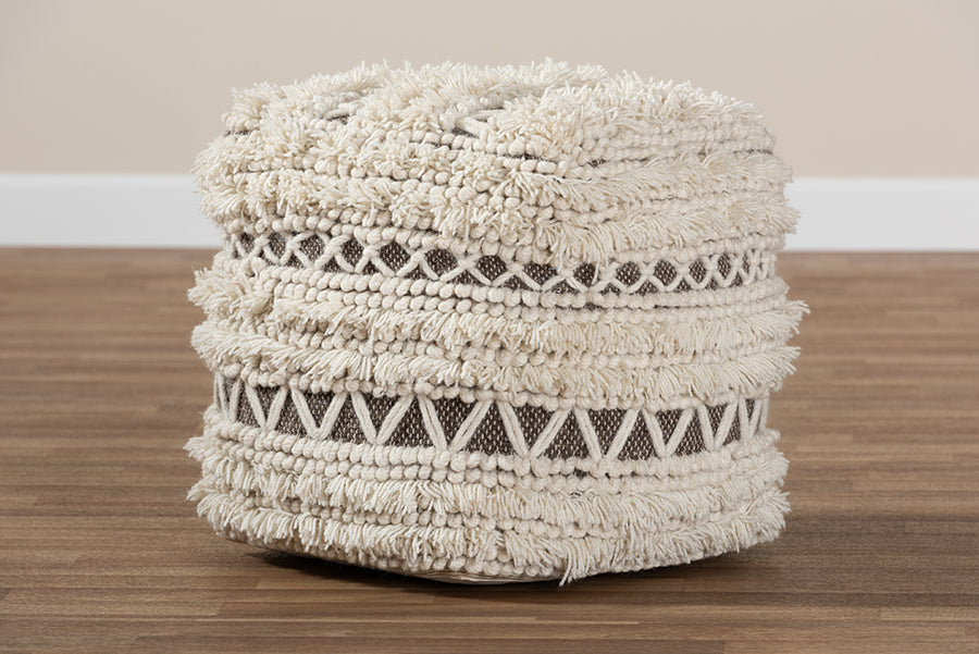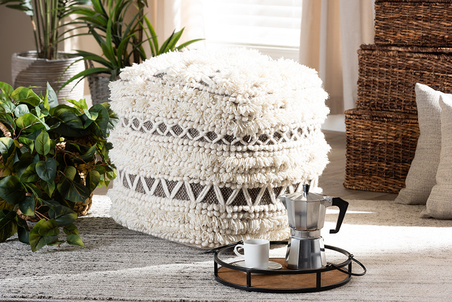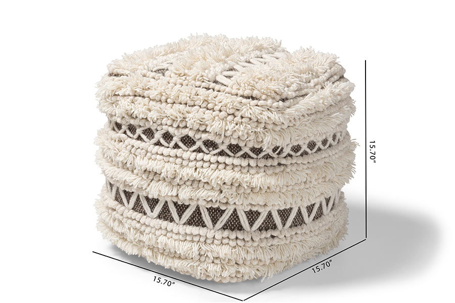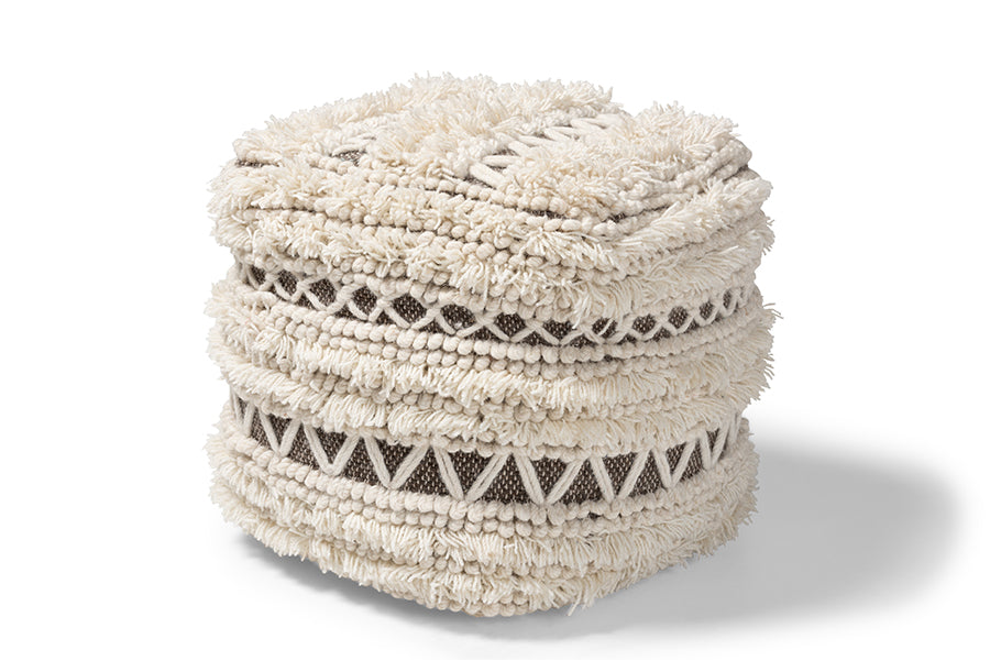 Baxton Studio Vesey Moroccan Inspired Beige and Brown Handwoven Wool Pouf Ottoman