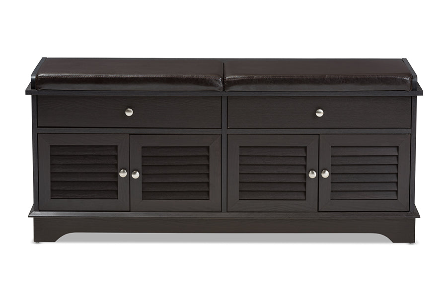 Baxton Studio Leo Modern and Contemporary Dark Brown Wood 2-Drawer Shoe Storage Bench