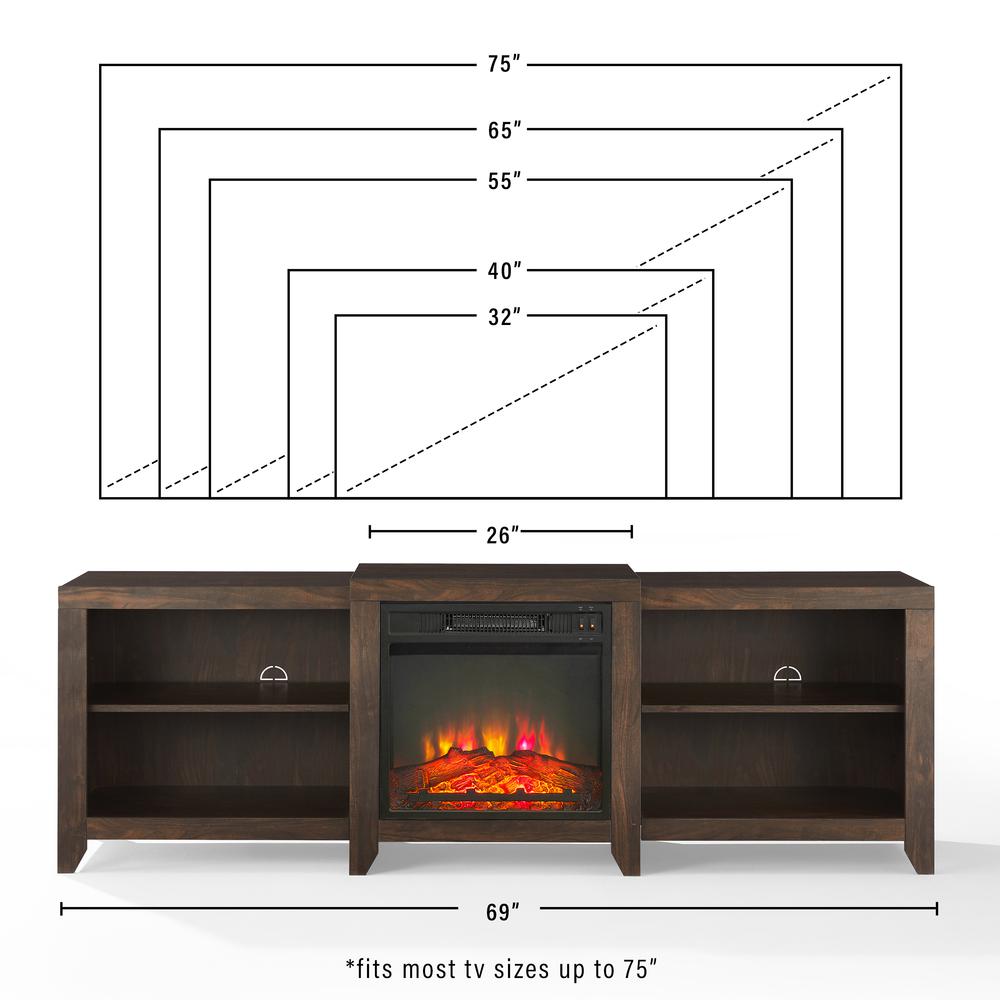 Ronin 69" Low Profile Tv Stand W/Fireplace Dark Walnut