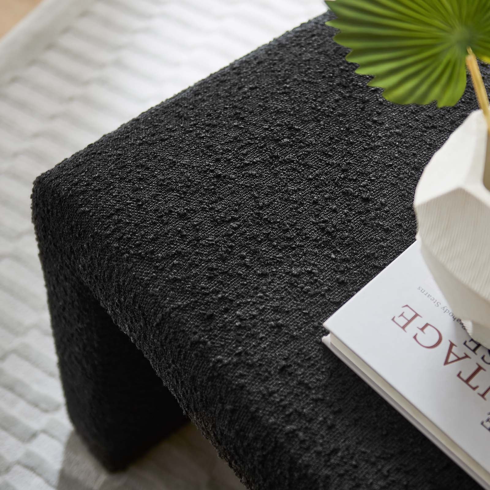 Let the Simba Boucle Fabric Stool redefine your space with its style and adaptability. Crafted with a sturdy plywood frame, this backless stool exudes a soft and tactile charm, thanks to the nubby texture of its boucle fabric. Simba features a unique waterfall design and serves as both a chic stool and a fashionable side table, effortlessly blending classic design elements with a touch of contemporary allure. The dense foam padding ensures a comfortable experience, whether as extra seating, a stylish surface, or a statement piece in your living room, lounge, or hallway. The Simba Upholstered Stool comes equipped with non-marking adjustable foot caps, ensuring stability while protecting your flooring. Assembly Required. Weight Capacity: 331 lbs. Set Includes: One - Simba Waterfall Stool