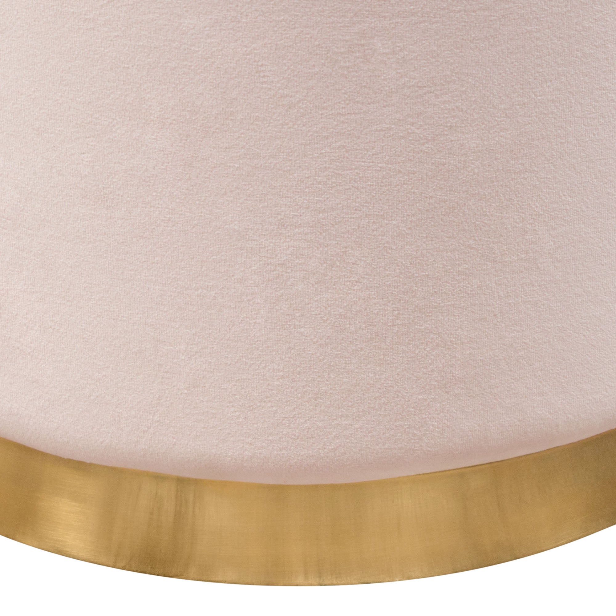 Sorbet Round Accent Ottoman in Blush Pink Velvet w/ Gold Metal Band Accent by Diamond Sofa