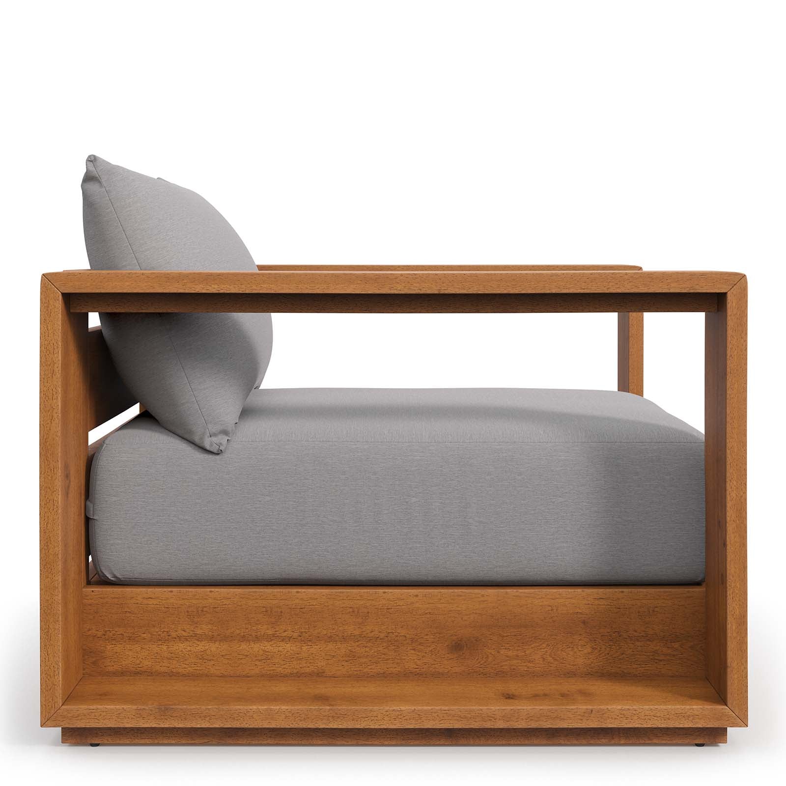 Enliven your alfresco spaces with the Tahoe Acacia Wood Outdoor Patio Chair. This modern outdoor club chair, which also functions as a cozy front porch chair, is constructed with FSC-certified acacia wood, offering organic elegance to your outdoor lounge spaces. With dense foam padding, it's perfect as a comfortable patio chair for poolside lounging. Featuring a UV and water-resistant fabric-covered seat and backrest, the removable outdoor cushions make this durable acacia wood chair low maintenance and high performing. An accommodating all-weather piece, the Tahoe lounge chair is perfect for outdoor relaxing and entertaining. It features non-marking foot glides to protect your deck or patio floor and comes with easy-to-follow assembly instructions. Weight Capacity: 500 lbs. Set Includes: One - ACACIA OUTDOOR ARM CHAIR