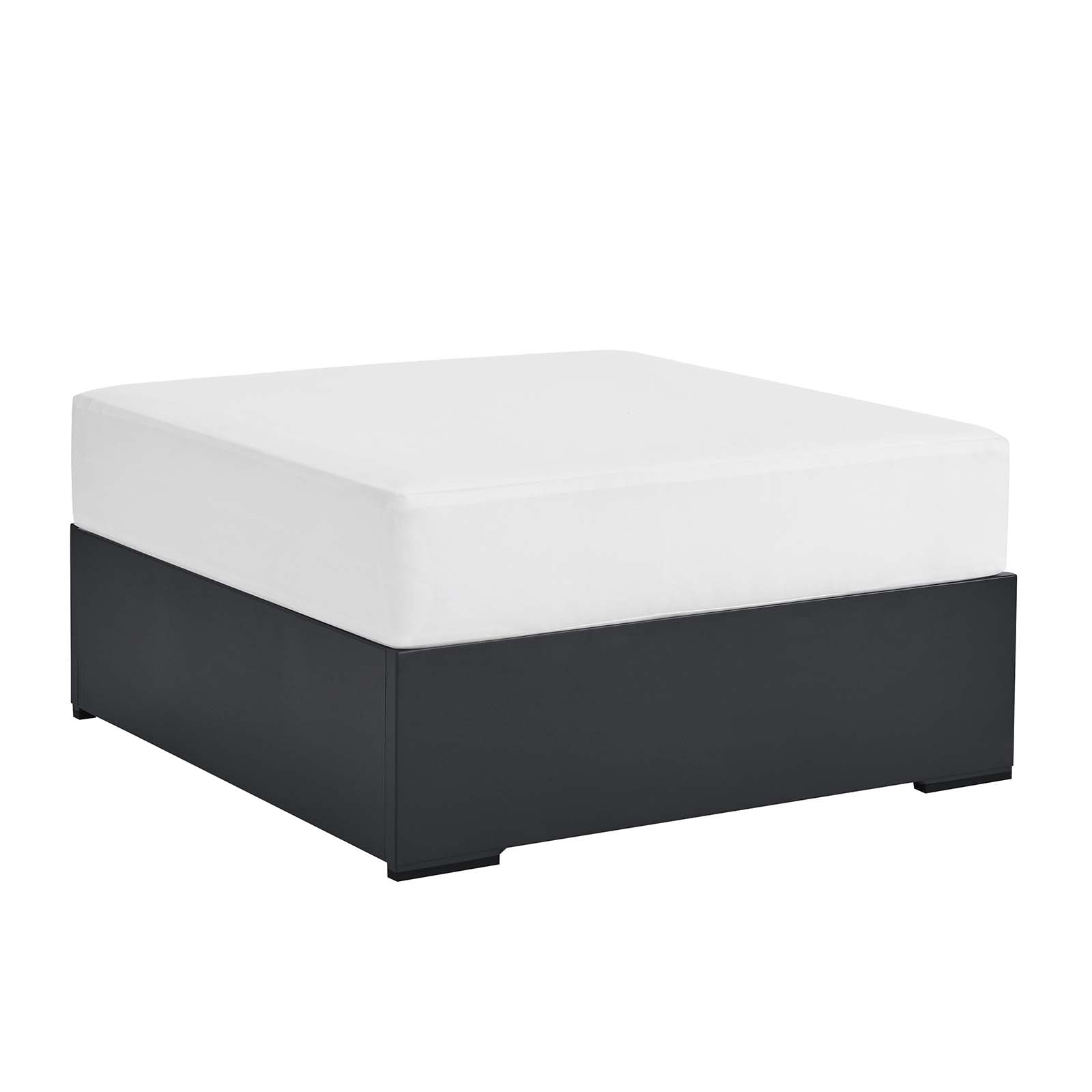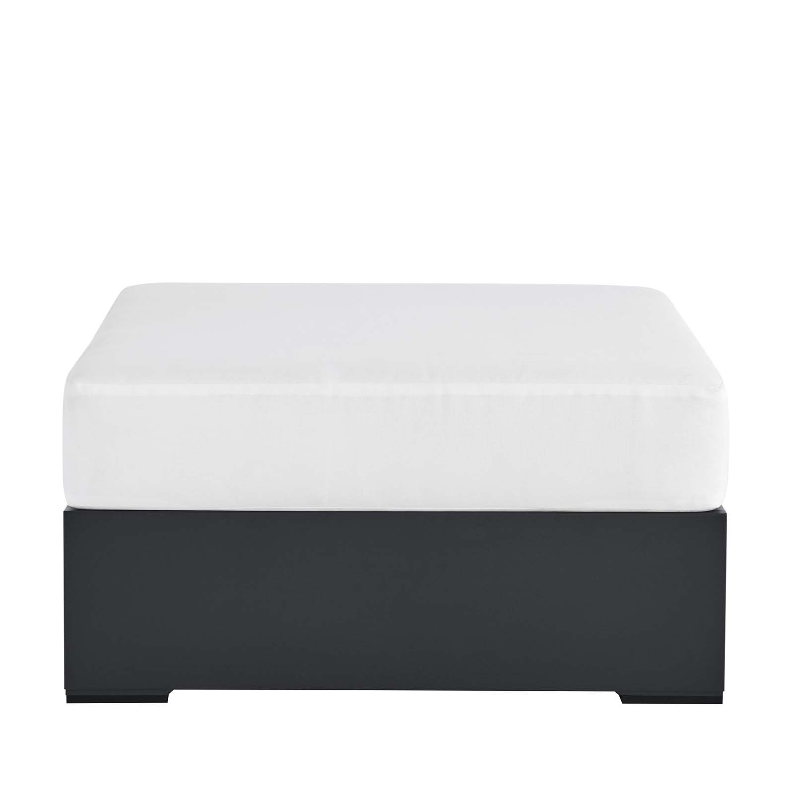 Enliven your alfresco spaces with the Tahoe Aluminum Outdoor Patio Ottoman. This modern outdoor patio ottoman is constructed with well-crafted, durable powder-coated aluminum, dispensing contemporary elegance in your outdoor lounge spaces. With dense foam padding for sustaining comfort before and after a dip, the Tahoe outdoor footstool is perfect for poolside lounging with a UV and water-resistant fabric-covered cushion. The cushion cover is removable for easy machine washing. An accommodating weather-proof patio ottoman, Tahoe complements outdoor furniture sofas or patio loveseats, offering the ideal place to prop up your feet and unwind. The entire Tahoe aluminum patio furniture set features non-marking foot glides to protect your deck or patio floor and comes with easy-to-follow assembly instructions. Weight Capacity: 331 lbs. Set Includes: One - Ottoman