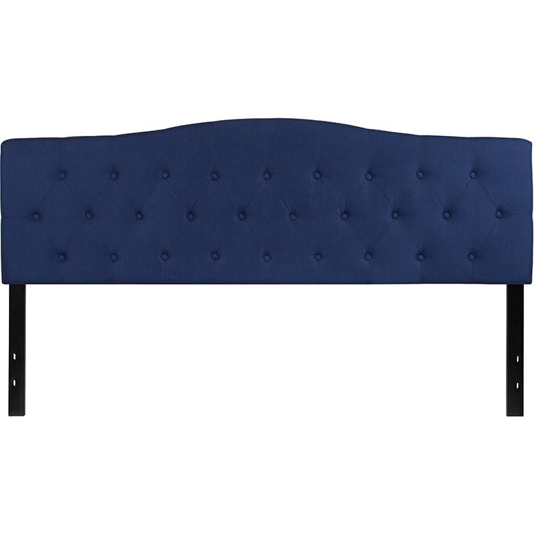 Tufted Upholstered King Size Headboard in Navy Fabric