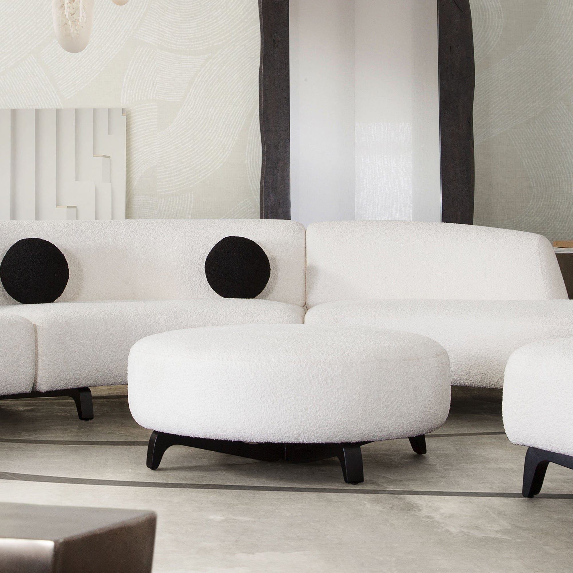The Vesper Curved Modular Collection by Diamond Sofa oozes a sophisticated & chic vibe with its sensuous curves, low profile seating & modular configurability. Covered in a White Faux Shearling fabric and accented by the Black Wood angular legs, the contrast is strikingly crisp. The Vesper collection is truly Fashion + Function. Seating Height is 16 Inches. Vesper Collection includes: Curved Armless Sofa, Curved LF Chaise, Curved RF Chaise, Armless Chair & Round Ottoman.