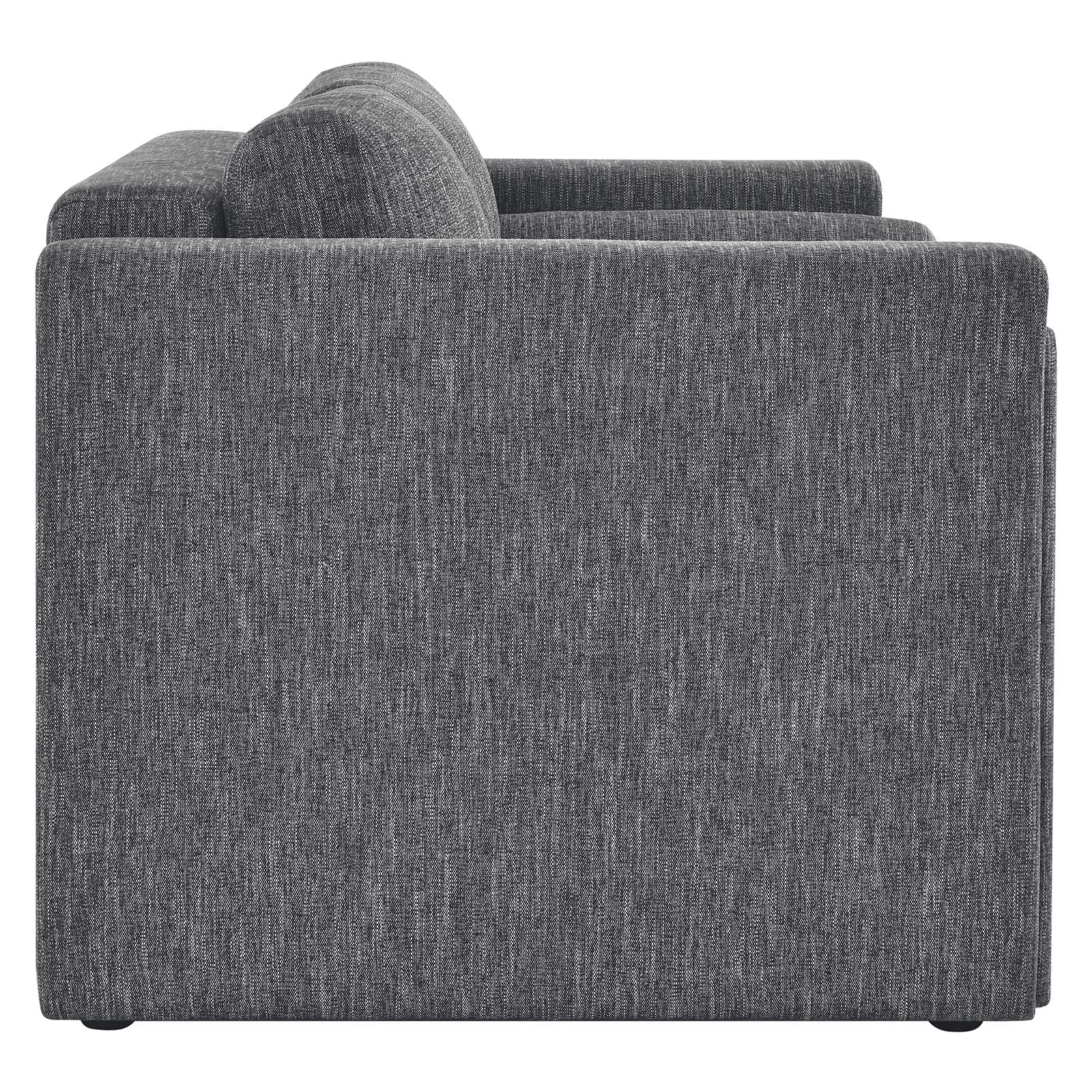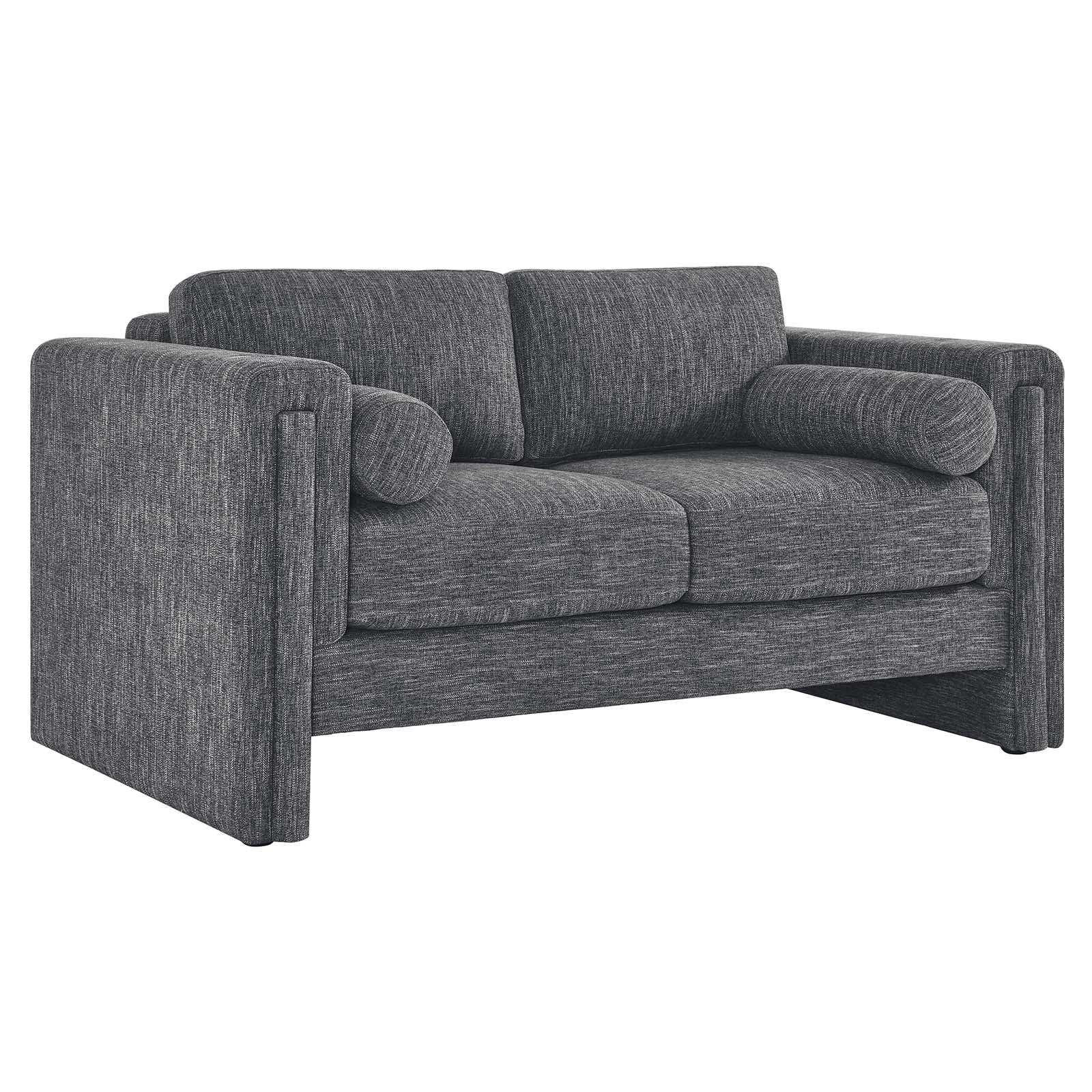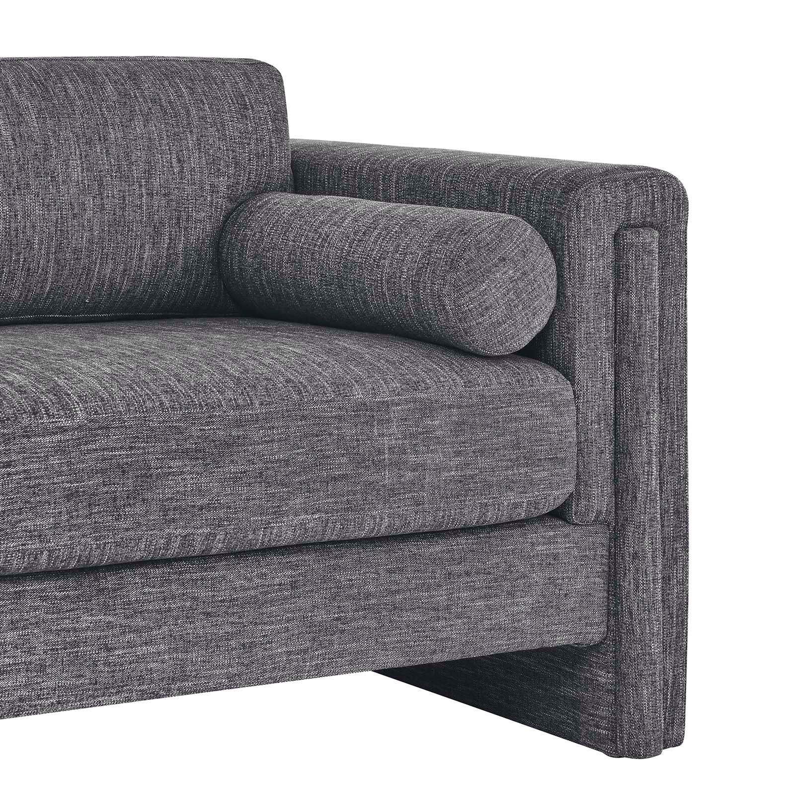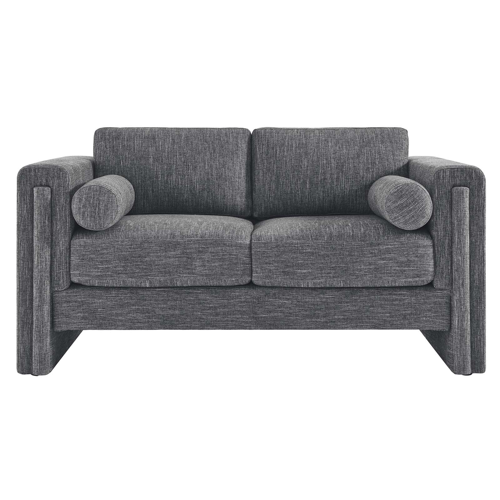Indulge in the epitome of modern luxury and sophistication with the Visible Fabric Upholstered Loveseat. Crafted with a sturdy wood and plywood frame, this loveseat exudes modern elegance with its sleek lines, tailored silhouette, and bolster pillows. The adjustable non-marking foot pads protect your flooring while providing sturdy stability. Sink into cozy comfort with the dense foam padding, individualized pocket spring support, and stain-resistant heathered weave polyester fabric upholstery on this two-seater sofa. The cushions and cushion covers are zippered and removable. Enjoy unmatched support with the pocket coil springs that offer a premium seating experience. Assembly is required with easy to follow assembly instructions. Weight Capacity: 660 lbs. Set Includes: One - Loveseat